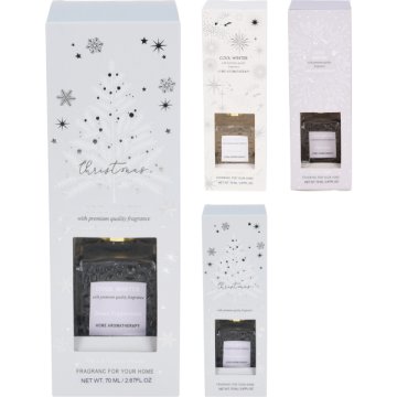 A CSOMAGOLÁS MÉRETE: 22X8X8 CM, 70ML, 3 VEGYES ILLAT:1.SNOW ANGEL 2.WINTER NIGHT 3.SWEET PEPPERMINT, ASS.:3 Színek (átlátszó/kék/szürke)