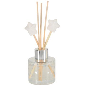 Illatosító, gyertya szett, 5 rattan pálcikával ebből 2 fehér karácsonyi dekorral 4 féle: fenyő, piros gyümölcs, karácsonyfa, almás fahéj