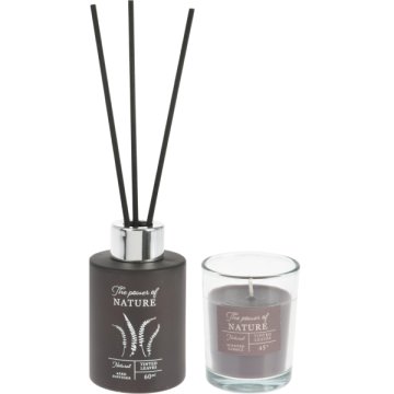 4 db/ sszett:, 2X illatgyertya üvegpohárban: 50X60MM , a gyertya: 45GR, 1X DIFFUSER: 60ML, 6 pálcika,4 illatban: Friss gyógynövény, IVORY-AMBER-VANILLA, BROWN-OUD WOOD, TAUPE-TINTED LEAVES.