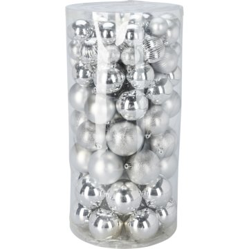 KARÁCSONYI GÖMB SZETT EZÜST 100DB 5 FÉLE MÉRET jellemzők