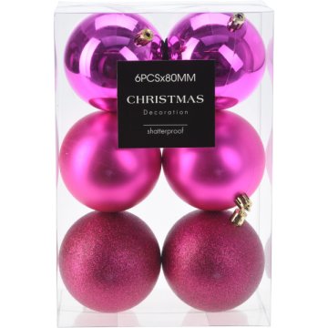 KARÁCSONYI GÖMB SZETT FUKSZIA 6DB jellemzők