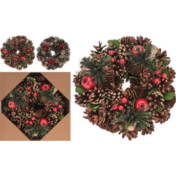 FENYŐTOBOZOKKAL ÉS BOGYÓKKAL, ANYAGA: TERMÉSZETES ANYAG, MÉRET: 8x26x26CM,2 féle modell: fehér/ natúr