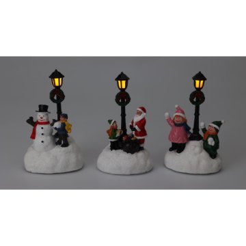 Téli ledes dekor jelenet, tartalmaz 2xLR44 elemet, 3 féle: gyerekek, hóember, télapó, anyaga: poliszton, mérete:13x8x6 cm
