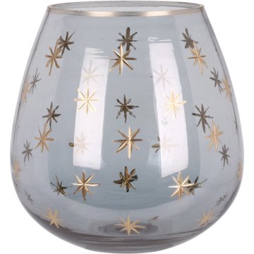 Mécses, füstös kék, arany mintával,anyaga: üveg,mérete: 14x14x14 cm