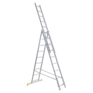 Erős kivitelezésű többfunkciós alumínium létra. Bordázott csúszásmentes lépcsőfokok, alumínium szerkezetének köszönhetően könnyű. Több pozícióba állítható, klasszikus létraként, tolólétraként, A alakú étraként használható. Munkavégzés közben kiváló stabilitást ad használójának. 33 fokos támasztólétra, mellyel maximum 6,5 m magasság érhető el, 150 kg maximális teherbírással. Munkavégzés közben kiváló stabilitást ad használójának.