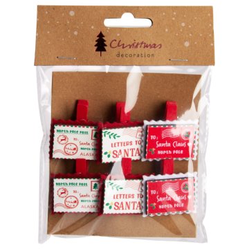 Dekor karácsonyi boríték klipsszel 3,5x3,5cm 6db/cs 4-féle jellemzők