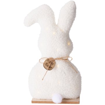 Dekor nyuszi leddel 32X15X6 CM 15 LED 2 féleTÖRTFEHÉR ÉS BARNA , 15 LED-EL. ELEMMEL MŰKÖDIK: 2X CR2032 ELEMET TARTALMAZ. ANYAGA: POLIÉSZTER ÉS FA