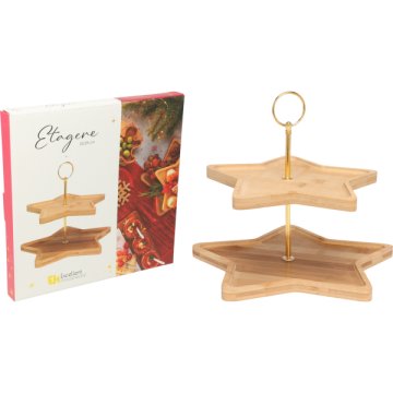 Karácsonyi kínáló állvány bambusz 2 szintes csillag alak 27x27x25cm jellemzők