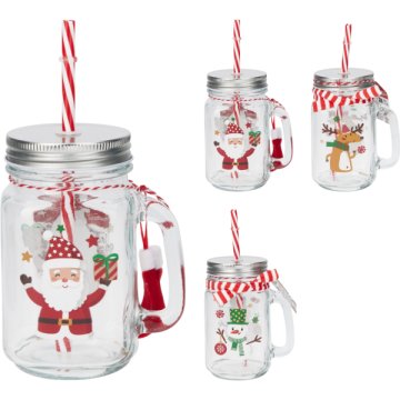 ANYAGA: ÜVEG/ FÉM / POLIPROPILÉN , ŰRTARTALMA: 450ML / MÉRET 20X7X7 CM, 3 FÉLE MODELL (hóember / Mikulás / rénszarvas) /