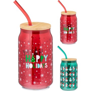 Karácsonyi szívószálas pohár fedővel 500 ml 2-féle mintával üveg jellemzők