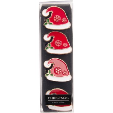 ANYAGA: CINK, SZÍN: PIROS ÉS FEHÉR, 2 FÉLE MODELL: CUKORKÁK ÉS MIKULÁS KALAP, MÉRETE A CSOMAGOLÁSNAK: 16X5X5CM, 1 GYŰRŰMÉRETE: 4X5X5 CM