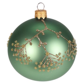Üveggömb 8cm zöld színű arany díszítéssel 4-féle típus jellemzők
