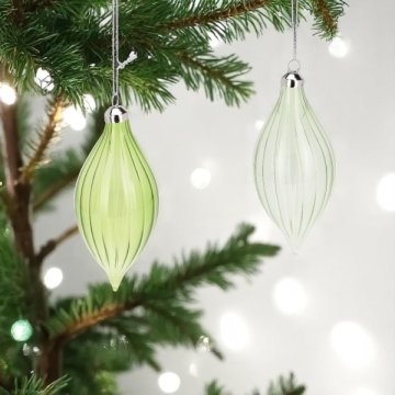 Üveggömb csepp formájú 12x6x6cm zöld 2-féle típus, átlátszó jellemzők
