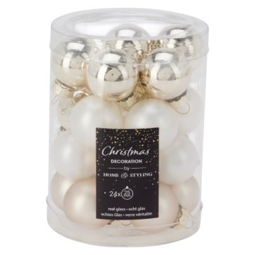 Üveggömb szett 24db-os 2,5cm 3-féle szín fényes jellemzők
