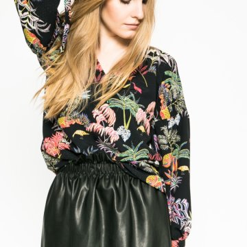 Póló kollekció Medicine. Mintás szövetből készült modell. Hegyes nyakkivágással rendelkezik. - Laza fazon. - Süllyesztett vállvonal. - Nem zárható modell. - A vékony, hajlékony anyagból. - Mintás szövet: - Dekoratív gyűrődések. - Hosszúság: 65,5 cm. - Hónalj alatti szélesség: 52 cm. - Megadott méret: S. bordás alkalmi Összetétel: 100% poliészter Termék azonosító: 6930-BDD571 Gyártó kód: RW17.BDD571