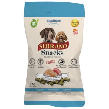 Összetétel: 40% serrano sonka, 15% csirkehús, 10% lazac, 10% tonhal, rizs, növényi glicerin, zöldborsó, szárított sárgarépa, napraforgóolaj, jukkalé, ásványi anyagok. Adalékanyagok: propionsav, kalcium-formiát, citromsav. Antioxidánsok: tokoferol kivonat. Ízesítő vegyület: rozmaring. Analitikai összetevők: fehérje: 26,2%, zsírtartalom: 8,1%, nyershamu: 10,0%, rost: 0,9%, nedvesség: 21,6%, 310 Kcal/100g, omega 3: 0,2g/100g, omega 6: 0,7g/100g , omega 9: 1,4g/100g. Etetési útmutató: adjuk nagyszerű jutalomként kiképzés vagy játék során. Tárolja hűvös és száraz helyen. Kiegészítő étel kutyáknak.