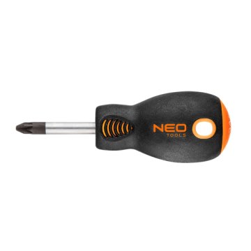 NEO PZ kereszt csavarhúzó. A csavarhúzó szára kivételesen ellenálló S2. A csavarhúzó hegy hőkezelésnek lett alávetve, így megfelelő, 56 HRC keménységet és hajlítószilárdságot ért el. A csavarhúzó hegye mágneses. A markolat három élű hasáb alakja a kialakított hüvelyktámasszal csökkenti a kéz megterhelését munka közben, és megkönnyíti a megfelelő forgatónyomaték elérését. A bimateriál markolat nem csúszik ki a kézből, ellenálló vegyszerek, kenőolajok és zsírok hatásának. A NEO márka a professzionális igényeket is kielégíti.