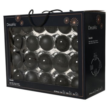 42 db-os 3-féle méretű fekete üveggömb szett jellemzők