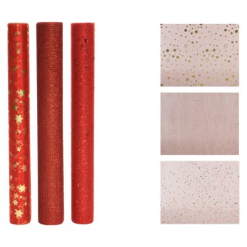 Deco fabric polyester glitter, foil organza, mesh 3ass