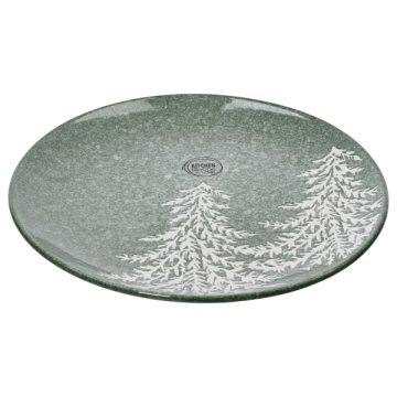 Dísztál 20x2,4cm fenyőfa mintával zöld színben kőporcelán