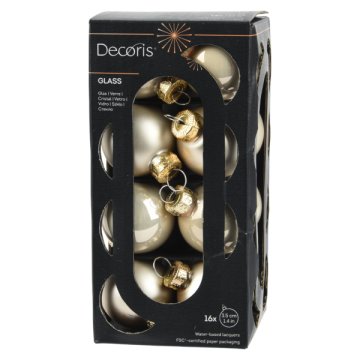 Üveggmb szett 16 db/csomag Felület: zománcozott és matt Kupak színe: arany Kupak típusa: fémkupak jellemző: műanyagmentes csomagolás Átmérő: 3,50 cm Szín: gyöngyház (pearl) Kivitel: vegyes (zománcozott és matt
