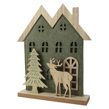 Karácsonyi dekoráció ház rénszarvassal 34,5x6x29cm rétegelt lemez jellemzők