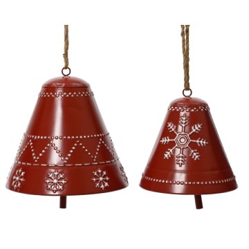 Dekor csengettyű fém piros 2 méretben: 23x23x22.5 cm; 18x18x18 cm