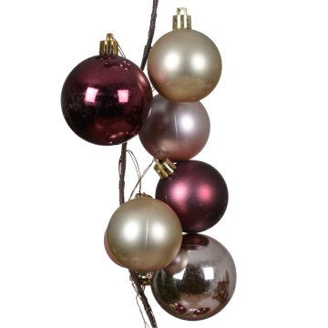 Girland karácsonyfa gömbökből gránátalma, gyöngy, pirosító rózsaszín matt/fényes törésálló műanyag 180cm