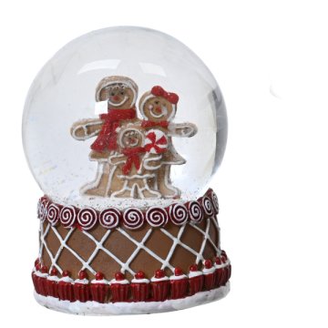 Hógömb 8.8cm 4 féle dizájn mézeskalács lány, mézeskalács fiú, mézeskalács család, ház