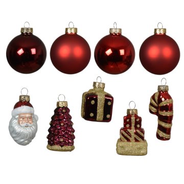Üvegdísz szett 6,3cm piros válogatás 18 db