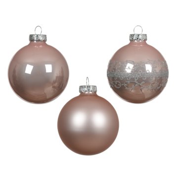 Üvegdísz szett 8cm rózsaszín 16db fényes/matt mix
