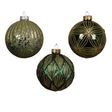 NORAND ÜVEGGÖMB 10CM ZÖLD DÍSZITETT 3 FÉLE jellemzők