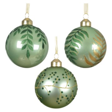 Üveggömb 8 cm 3-féle matcha zöld színben jellemzők
