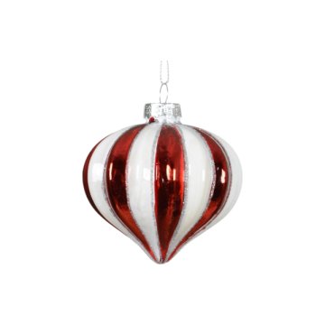 Üveggömb 8 cm piros-fehér 3-féle jellemzők