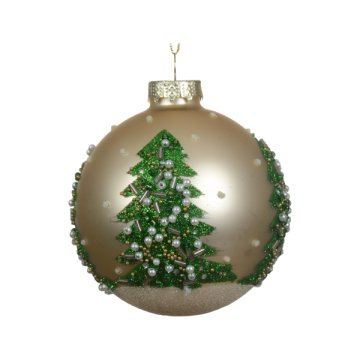 Üveggömb 8cm arany színű zöld fenyőfával jellemzők