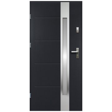 Az ajtó szárnyvastagsága 55 mm préselt acéllemez. Szigetelése habosított polisztirol. Lemezvastagság: (ajtókeret/ajtólap) - 1,2 mm/ 0,6 mm. Felülete UV álló PVC dekorfóliával van bevonva. Az ajtók 2 független zárszerkezettel, 3 állítható zsanérral vannak felszerelve, 180 fokos nyitási tartományban nyitható. Tömítés a keretben és a küszöbön. A beépítési egységcsomag tartozék: 011-es kilincs, 03-as zárbetét.