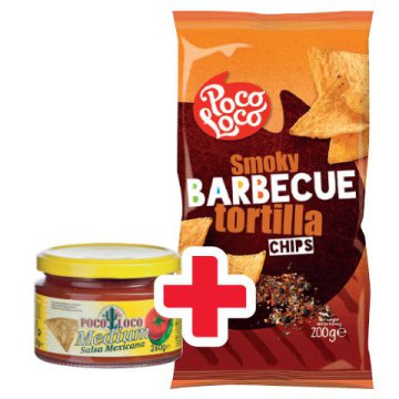 Poco Loco tortilla chips, többféle, 200 g, 2495 Ft/1 kg, 499 Ft/cs,Poco Loco mártogatós szósz, sajtos, salsa, mediterrán, 250/260 g, 2592/2492 Ft/1 kg, 648 Ft/db,Együtt: 799 Ft
