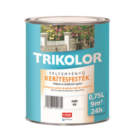 TRIKOLOR SELYEMFÉNYŰ KERÍTÉSFESTÉK 0,75L FEHÉR jellemzők