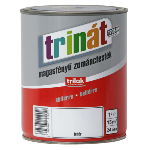 TRINÁT fényes zománcfesték 601 zöld, kiszerelés: 0,25 liter, kiadósság: 11-15 m2/l (függ a színtől, a felhordási módtól és a bevonandó felülettől) TRINÁT MAGASFÉNYŰ ZOMÁNCFESTÉK Kül- és beltéri fa-, fal- és fémfelületek, általánosan használt, gyorsan száradó, kiválóan terülő, kemény bevonata. Csillogó fény Időjárásálló Alkalmazási terület: Alapozott kül- és beltéri fafelületek (bútorok, nyílászárók stb.) és beltéri falfelületek (lépcsőházak, iskolák), továbbá kül- és beltéri fémszerkezetek (kerítés, csövek stb.) átvonó festésére használható. Bevonata az időjárás behatásainak tartósan ellenáll, fényességét, színét megőrzi. Könnyen ecsetelhető. Felhasználási mód: Az új, légszáraz fából, forgácslapból, ill. farostlemezből készült faszerkezetek (nyílászárók, bútorok stb.) felületét csiszolás és portalanítás után FÉLOLAJ-jal vagy LENOLAJKENCÉ-vel, kültéri alkalmazás, vagy nedvességnek kitett felületeknél LIGNOPROT vagy LIGNOLIT megelőző faanyagvédő szerrel kell beereszteni, a fafelület megmaradt szívóképességét Félolajjal vagy Lenolajkencével kell pórustömíteni. Esetleges nagyobb mélyedéseket DISZPERZIÓS MÉLYEDÉSTAPASZ, UNIKITT, vagy TRINÁT MESTERTAPASZ-szal kell kiegyenlíteni. Falfelületek impregnálására CEHALIN MÉLYALAPOZÓ vagy FÉLOLAJ alkalmazása célszerű. Vas- és acélfelületeket oxidmentesítés és zsírtalanítás után TRINÁT KORRÓZIÓGÁTLÓ ALAPOZÓVAL kell bevonni. A mélyedéseket TRINÁT mestertapasszal vagy FILLING UP tapasszal kell kiegyenlíteni. Alumínium-, horganyzott felületeket zsírtalanítás után Wash Primer-rel kell átvonni. Az előzőekben felsorolt műveletek után hordják fel a portalanított fafelületre a TRINÁT MESTERALAPOZÓ-T, a TRINÁT UNIVERZÁLIS ALAPOZÓ-T (fémfelületeknél közbenső rétegként), egy vagy két rétegben. Az alapozott, szükség szerint megcsiszolt és portalanított felületre egy vagy két rétegben ecsetelik, hengerezik, szórják fel a felhordási konzisztenciára hígított TRINÁT MAGASFÉNYŰ zománcokat. Felújító jellegű munkáknál, olajfestékkel, olajműgyanta alapú zománccal bevont ép, sértetlen bevonatok csiszolást, zsírtalanítást és portalanítást követően a termékkel átvonhatók. A hibák kijavítását a fent leírt anyagokkal (DISZPERZIÓS MÉLYEDÉSTAPASZ, FILLING UP,UNIKITT, TRINÁT MESTERTAPASZ, TRINÁT UNIVERZÁLIS ALAPOZÓ vagy TRINÁT MESTERALAPOZÓ) lehet elvégezni. Használat előtt alaposan felkeverjük. Minőségi jellemzők: Hígíthatóság: lakkbenzin tartalmú hígítóval (SZINTETIKUS HÍGÍTÓ) Kiadósság: 11-15 m2/l (függ a színtől, a felhordási módtól és a bevonandó felülettől) Felhasználhatósági idő: 2 év (5-25 °C hőmérsékleten tárolva) Száradási idő, 23 °C-on: porszáraz: 5 óra száraz: 24 óra Átvonhatóság, 23 °C-on: 24 óra múlva Sűrűség, 23 °C-on: 0,9–1,16 g/cm3 színtől függően Nem illóanyag tartalom: (120 °C, 2 óra) 50–67%, színtől függően Felépítés: alkid műgyanta alapú festék Veszélyesanyag-tartalom: White Spirit 150/200 (lakkbenzin) 30–45% Engedélyek: KERMI sz.: V-204-211/1984, ÉMI eng. sz.: A-501/b/1969, MF 322-86, MF 327-86, Biztonsági előírások Kevésbé tűzveszélyes. Tűzvédelmi előírás: II. Tűzveszélyességi fokozatba tartozik. TŰZ- ÉS ROBBANÁSVESZÉLYES! Elzárva és gyermekek számára hozzáférhetetlen helyen tartandó. A keletkező gőzt/permetet nem szabad belélegezni. Kerülni kell a bőrrel való érintkezést és a szembe jutást. Lenyelés esetén azonnal orvoshoz kell fordulni, a címkét az orvosnak meg kell mutatni. Csak jól szellőztetett helyen használható.
