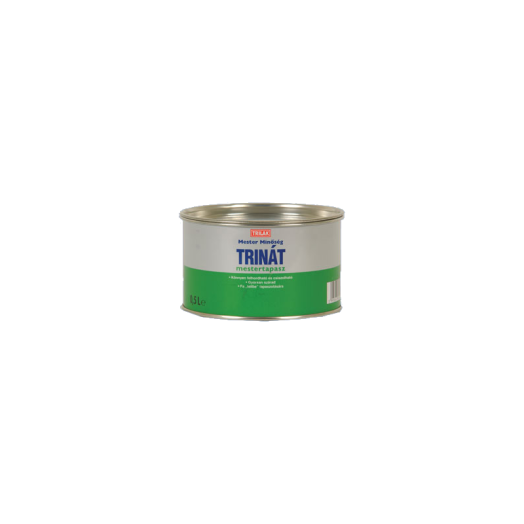 TRINÁT mestertapasz, kiszerelés: 0,5 liter, kiadósság: 5 m2/l (0,2 mm rétegvastagságban)TRINÁT MESTERTAPASZ Könnyen felhordható és csiszolható Gyorsan szárad Fa „telibe” tapaszolására Fa- és fémfelületek felületi egyenetlenségeinek kitöltésére használható, igen gyorsan száradó, könnyen felhordható és csiszolható tapasz. Alkalmazási terület: Kül- és beltéren egyaránt alkalmas fa- és fémfelületek felületi egyenetlenségeinek kitöltésére. Könnyen, simán hordható fel. Igen gyorsan szárad. A megszáradt késtapasz tömör, vízálló, kemény, megfelelő rugalmasságú, könnyen csiszolható. Felhasználási mód: A fafelületeket tapaszolás előtt célszerű enyhén, szárazon megcsiszolni. Kültéri vagy nedvességnek kitett helyeken LIGNOPROT vagy LIGNOLIT faanyagvédő szerrel kell átitatni, a fafelület megmaradt szívóképességét Félolajjal vagy Lenolajkencével lehet pórustömíteni. Beltéri helyeken elegendő a LENOLAJKENCÉ -vel vagy FÉLOLAJ -jal történő beeresztés. A felület teljes száradása után hordható fel a TRINÁT MESTERTAPASZ kenőkéssel, kb. 0,2 mm-es rétegvastagságban. A levegőn (23 °C-on) gyorsan száradó tapasz 2 óra elteltével már könnyen csiszolható. Ezután az alapozó festés következik TRINÁT UNIVERZÁLIS ALAPOZÓ -val, TRINÁT RAPID ALAPOZÓ -val, vagy TRINÁT MESTERALAPOZÓ -val. A megcsiszolt és portalanított felület TRINÁT zománcokkal vagy TRIKOLOR festékkel közvetlenül csiszolás után, Nitrozománccal 6 óra elteltével vonható át. Fémfelületet rozsdamentesítés, csiszolás, portalanítás és zsírtalanítás után TRINÁT KORRÓZIÓGÁTLÓ ALAPOZÓ -val kell alapozni. Ezután lehet a felületi egyenetlenségeket TRINÁT MESTERTAPASZ-szal kiegyenlíteni. A tapaszolt felületet TRINÁT UNIVERZÁLIS ALAPOZÓ-val, TRINÁT RAPID ALAPOZÓ-val, vagy TRINÁT MESTERALAPOZÓ-val kell alapozni. A megcsiszolt és portalanított felület TRINÁT zománcfestékekkel vagy TRIKOLOR festékkel közvetlenül csiszolás után, Nitrozománccal 6 óra elteltével vonható át. Kültéri fémfelületek festésénél a festékréteg időjárás állóságának további növelése érdekében az alapozás után VASCSILLÁMOS KÖZBENSŐ FESTÉK felvitele javasolt. Minőségi jellemzők: Hígíthatóság: lakkbenzin tartalmú hígítóval (SZINTETIKUS HÍGÍTÓ) Kiadósság: 5 m2/l (0,2 mm rétegvastagságban) Felhasználhatósági idő: 1 év (5–25 °C hőmérsékleten tárolva) Átkeményedési idő, 23 °C-on: 2 óra (0,2 mm rétegvastagságban) Átvonhatóság, 23 °C-on: TRINÁT alapozóval és zománccal 4 óra elteltével, NITRO zománccal 6 óra elteltével Csiszolhatóság, 23 °C-on: 2 óra (0,2 mm rétegvastagságban) Sűrűség, 23 °C-on, min.: 1, 75 g/cm3 Nem illóanyag tartalom: min. 78% (120 °C/2 óra) Felépítés: Módosított alkidgyanta kötőanyagú javítótapasz. Tűzvédelmi előírás: II. Tűzveszélyességi fokozatba tartozik. TŰZ- ÉS ROBBANÁSVESZÉLYES! Veszélyesanyag-tartalom: White Spirit 150/200 (lakkbenzin) 10–20% Engedélyek: KERMI sz.: 51-1708/94, Biztonsági előírások Kevésbé tűzveszélyes. Elzárva és gyermekek számára hozzáférhetetlen helyen tartandó. Kerülni kell a bőrrel való érintkezést és a szembe jutást. Lenyelés esetén azonnal orvoshoz kell fordulni Csak jól szellőztetett helyen használható.