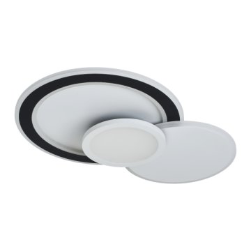 A Rábalux Stavros mennyezeti lámpát azoknak ajánljuk, akik számára az okos funkciók mellett a kreatív formatervezés is fontos. A LED lámpa fémből, fekete színben, fehér műanyag búrával készül, és három eltérő méretű, kerek, egymást részlegesen fedő lámpaelemből áll. Beépített LED fényforrást tartalmaz, ami energiahatékony működést és hosszú élettartamot garantál. A lámpa színhőmérséklete távirányítóval vagy fali kapcsolóval állítható. Továbbá rendelkezésünkre áll RGB világítás, ami a középső, legkisebb lámpaelem felületén érvényesül. A mennyezeti lámpa fényereje ugyancsak állítható, ezenkívül memória funkció is elérhető – mindkettő távirányítóval kezelhető. A lámpa fényereje elegendő egy tágasabb szoba bevilágítására. Ideális választás a nappaliba, étkezőbe vagy hálószobába.
