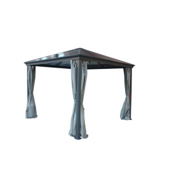 Reckmann alumínium vázas 300x300x268cm pavilon oldalponyvával, polikarbonát tetővel jellemzők