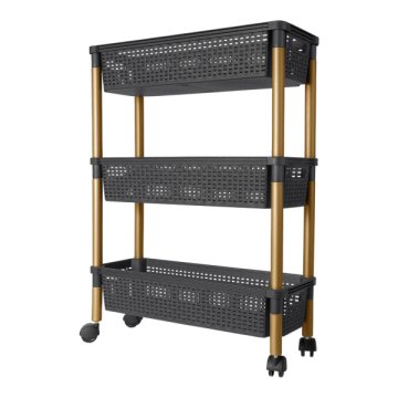 Rival Keskeny 3 szintes "Trolly" tárolókocsi rattan mintázattal fekete jellemzők