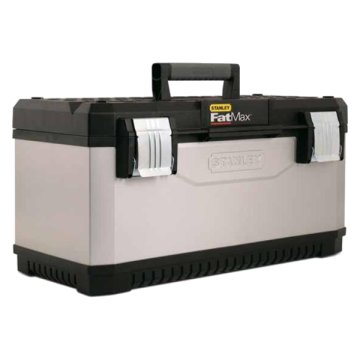 STANLEY SZERSZÁMOSLÁDA 23". Fém-műanyag szerszámosláda. Nagyméretű tárolórész szerszámok részére. Erős fémcsatok. Kivehető szerszámtálca. Bimateriális, ergonomikus fogantyú. Megerősített fedél. 58,4X29,3X19,5cm.