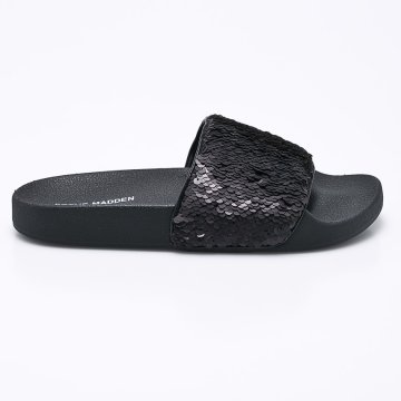 Strandpapucs kollekció Steve Madden. Szintetikus anyagból készült modell. - Model z dwustronnymi cekinami. - Stabil talp. - Betét hossza: 23,5 cm. - Megadott méret: 37. szintetikus Összetétel: Szár: szintetikus anyag Belseje: szintetikus anyag, textil Talp: szintetikus anyag Termék azonosító: 4921-OBD2M1 Gyártó kód: 91000961.01001