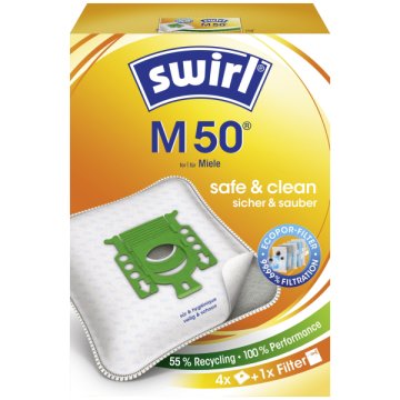 "A Swirl® porzsák EcoPor szűrővel biztonságosan zárja magába a port és a szennyeződéseket: • Kiszűri a felszívott finom por, pollenek, baktériumok, spórák és egyéb allergének 99,99 %-át • Porzárral segíti a tiszta és kényelmes hulladékkezelést • Különösen szakadásálló, nemszőtt anyagból készült Az EcoPor szűrővel ellátott Swirl® porzsák részben újrahasznosított papírból és újrahasznosított műanyagból készül, környezetbarát módon, 100 %-os tisztítóteljesítménnyel!" A csomag 4 db porzsákot tartalmaz. Csomag tartalma 4 db Porzsák + 1 db Filter.
