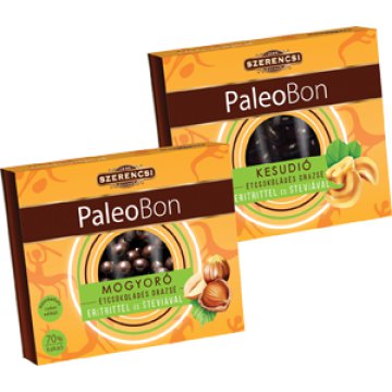 PaleoBon étcsokoládés kesudió vagy mogyoró drazsé eritrittel és steviával 7990 Ft/kg jellemzők