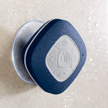 Kábel nélküli zeneátvitel Bluetooth®-on keresztül Beépített rádió Kihangosító hívásfogadással Felfröccsenő vízzel szemben védett: zenehallgatás a zuhany alatt Különösen erős tartás - a nagyméretű tapadókoronggal sima felületekre, pl. zuhanykabin falára vagy csempére rögzíthető Beépített akkumulátor - üzemidő max. 6 óra, feltöltési idő kb. 4 óra Hatótávolság max. 10 m - kisebb hatósugár esetén ajtókon és falakon keresztül is Be-/kikapcsoló, hangerőszabályozó, zeneszámvezérló és hívásfogadó gomb Soft touch felülettel Beépített rádió