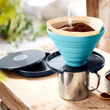 Friss kávé útközben is - ideális pl. kempingezéskor Helytakarékosan összehajtható - praktikus tárolódobozzal Egyszerűen helyezze a csészére vagy a kannára, és tegyen bele szűrőpapírt Max. 12 csésze kávéhoz 4-es méretű szűrőpapírokhoz Használat után óvatosan, két kézzel fogja meg a tányérnál, vegye le és ürítse ki a filtert Használat után hajtsa össze a filtertartót és tartsa a tárolódobozban