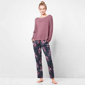 Puha, kevert viszkózanyag Felsőrész hátul mutatós csipkével és megkötős kis hasítékkal Elasztánnal: formatartó, tökéletesen áll, rendkívül kényelmes viselet Nadrág oldalsó, bevágott zsebekkel, rugalmas derékrésszel és megkötővel a bőség állításához Szabásvonal: normál 2 részes